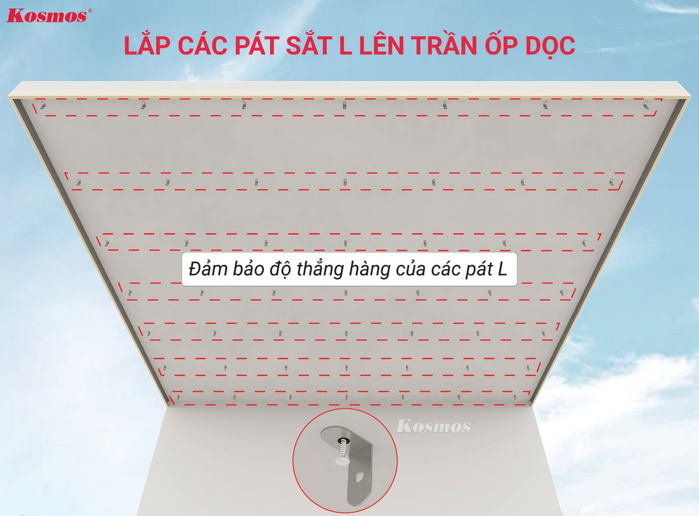 Quy trình cố định pát sắt L vào trần gồm 2 công đoạn chính: