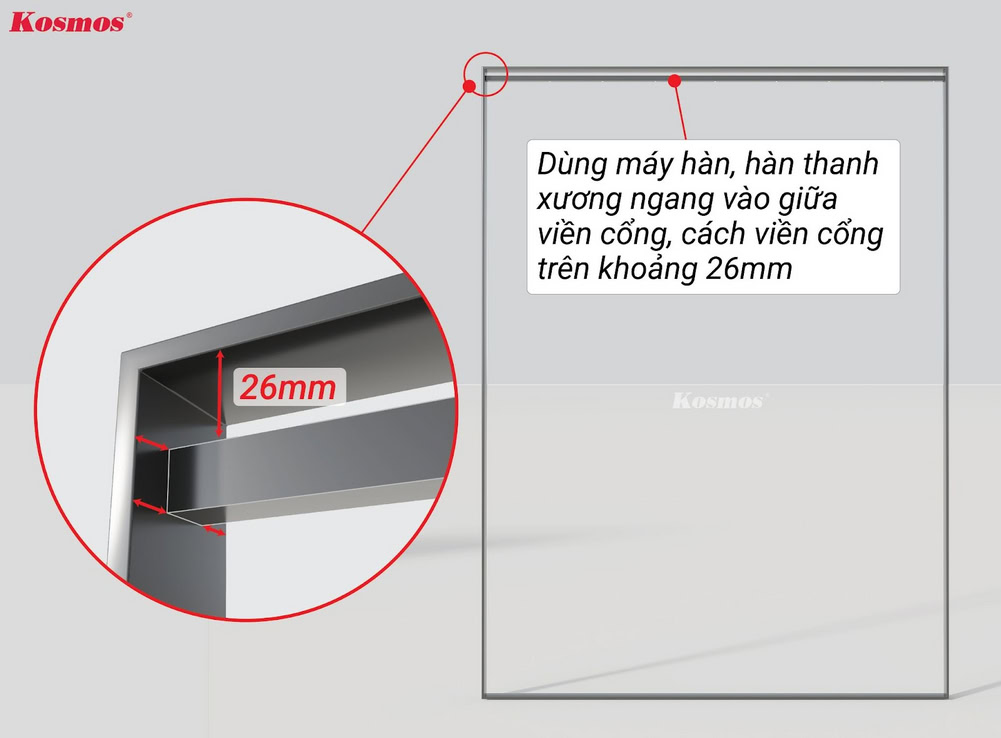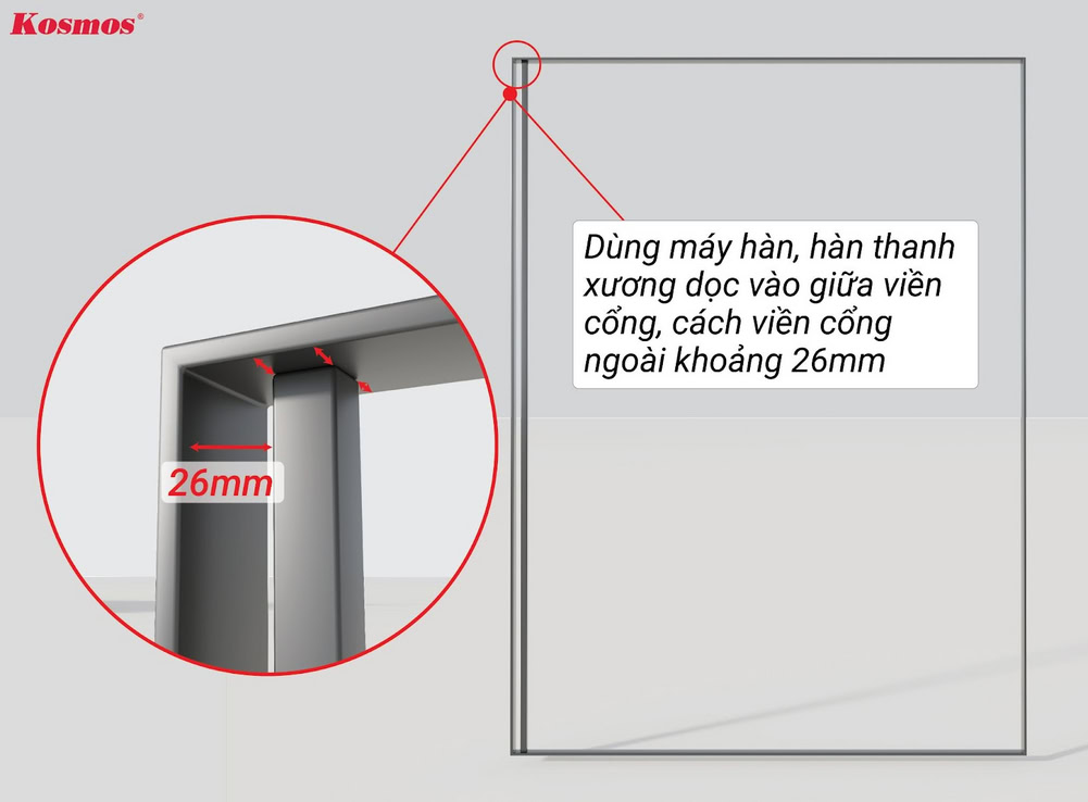 - Ốp cổng ngang, lắp thanh xương dọc.
