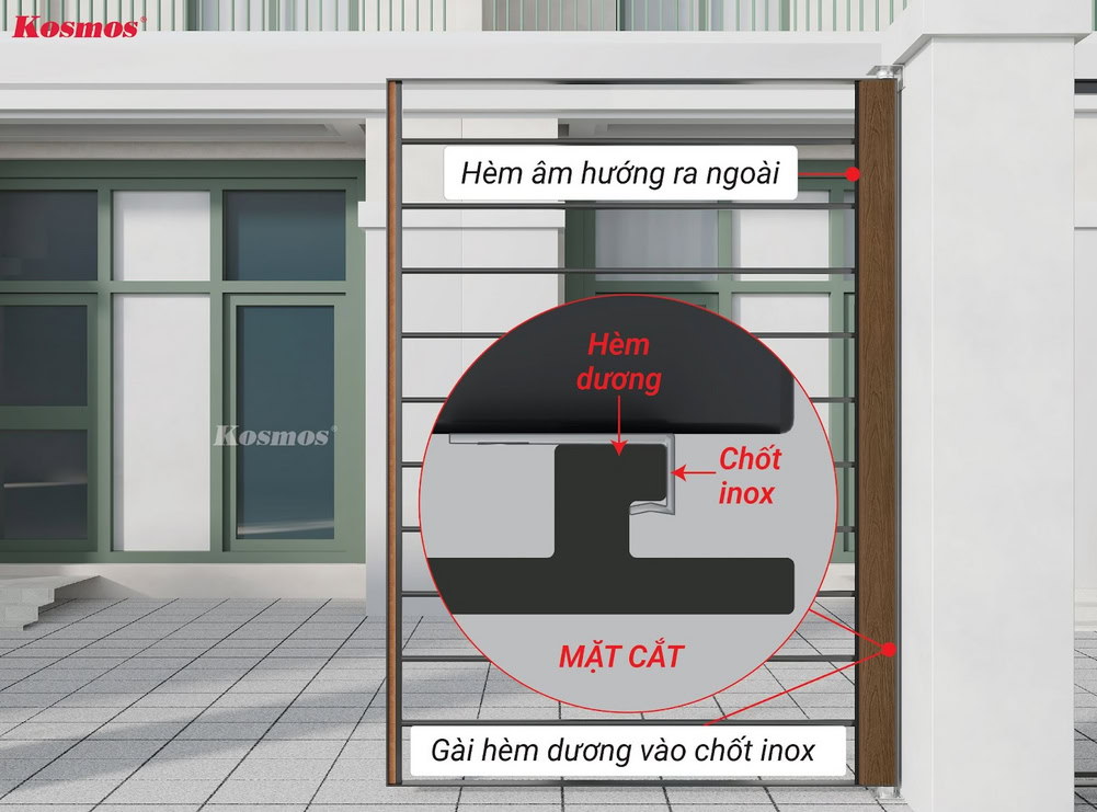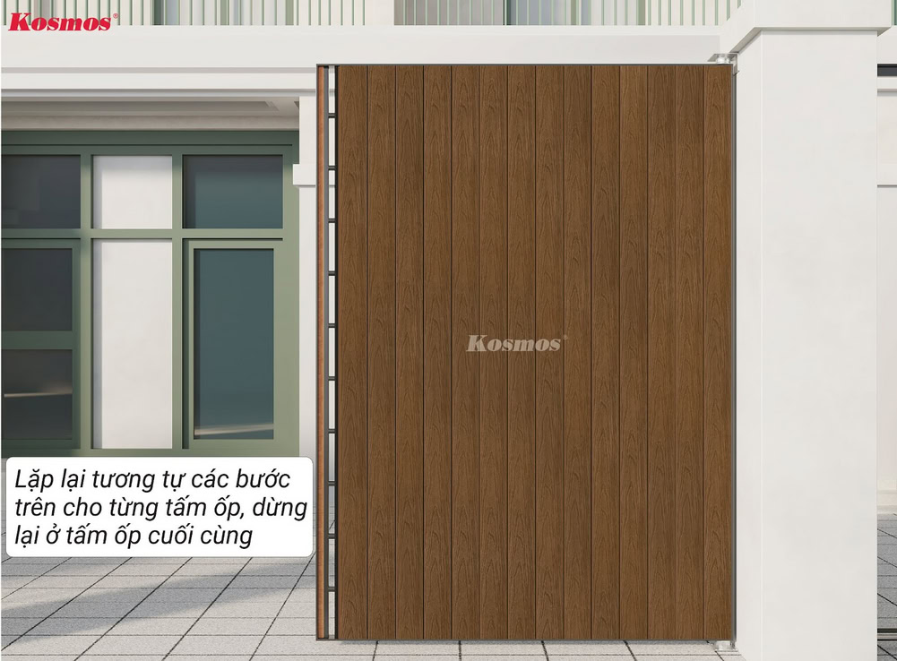 Kosmos khuyến cáo về kích thước cổng thi công tấm ốp gỗ nhựa 2 lớp OP156: