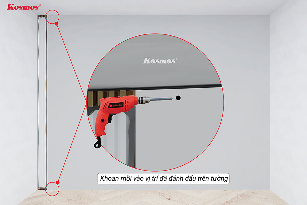 Khoan lỗ lên tường tại vị trí đã đánh dấu.
