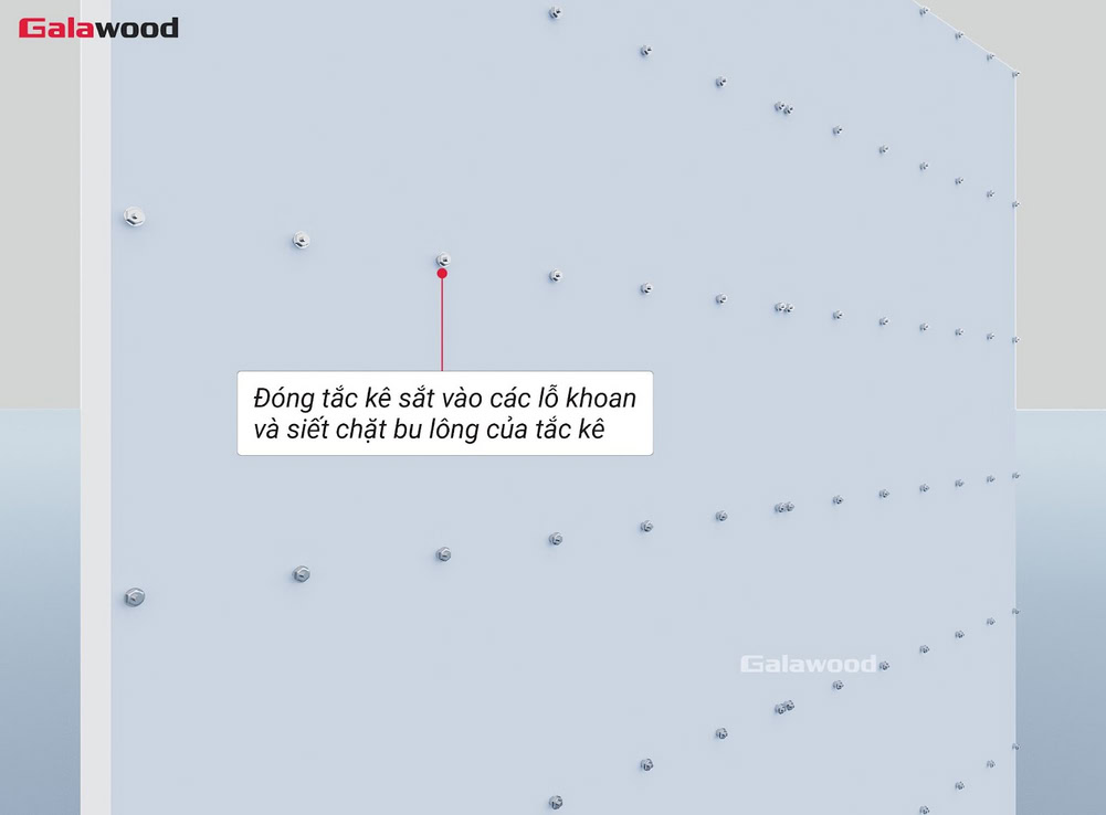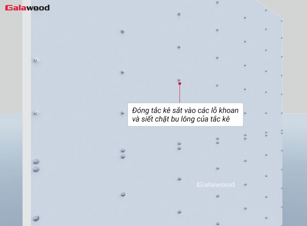 Ta cần tạo mối nối giữa tường và khung xương đỡ tấm nhựa ASA bằng tắc kê sắt, thao tác cụ thể: