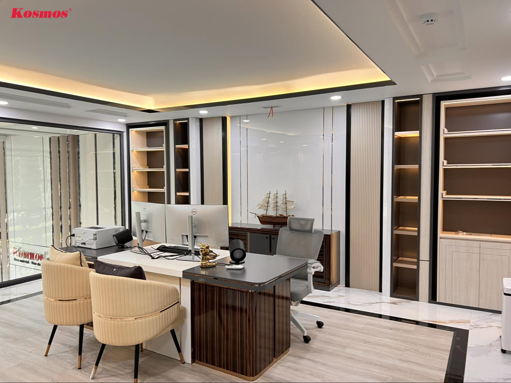 Quý khách đang tìm kiếm giải pháp vật liệu hoàn thiện cho phòng làm việc, hãy liên hệ ngay Kosmos qua số 0932 067 388 để nhận tư vấn chi tiết miễn phí.