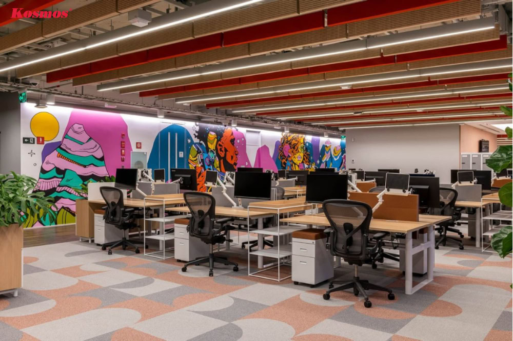 Mẫu thiết kế văn phòng cho nhân viên hiện đại thường chú trọng đến sự kết nối và thúc đẩy tinh thần teamwork. Thiết kế mở (open-plan) giúp các nhân viên dễ dàng trao đổi, thuận tiện cho công việc cùng nhau. Tuy nhiên, cần cân bằng giữa không gian mở và nhu cầu tập trung cá nhân.