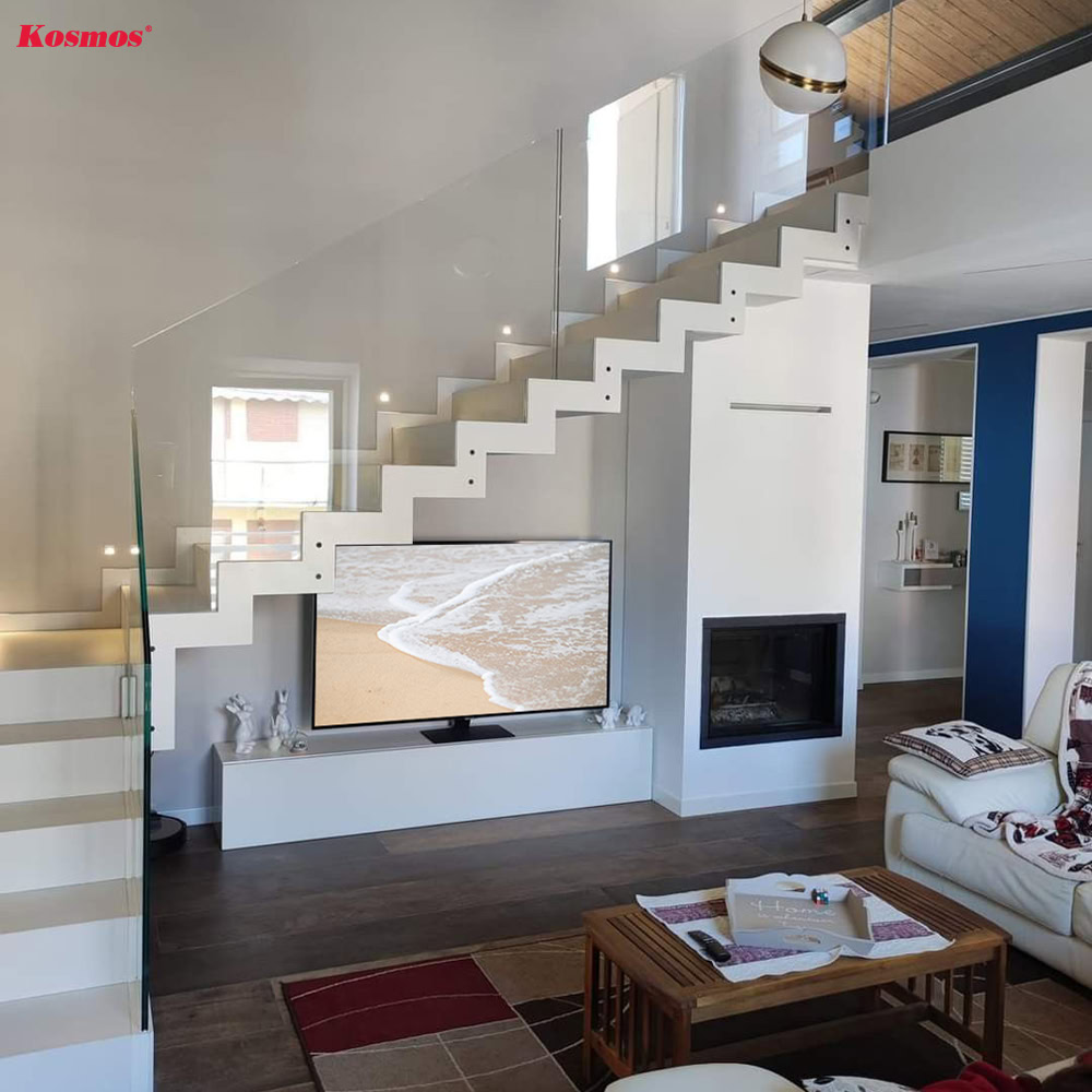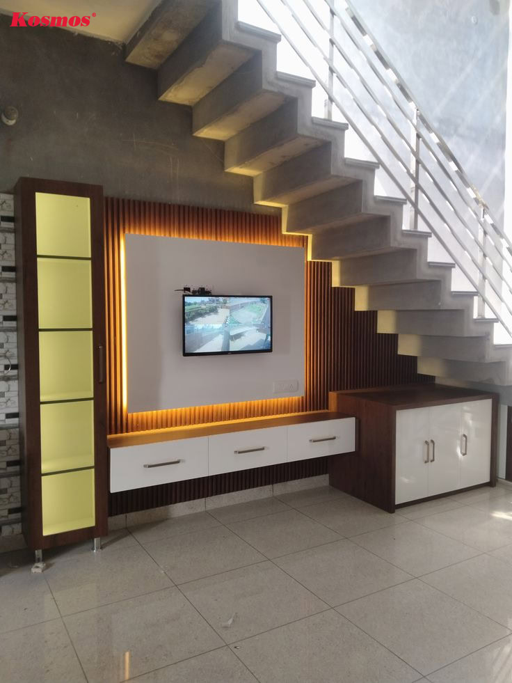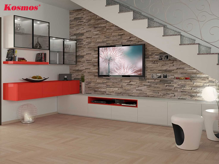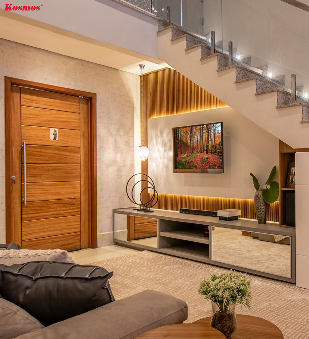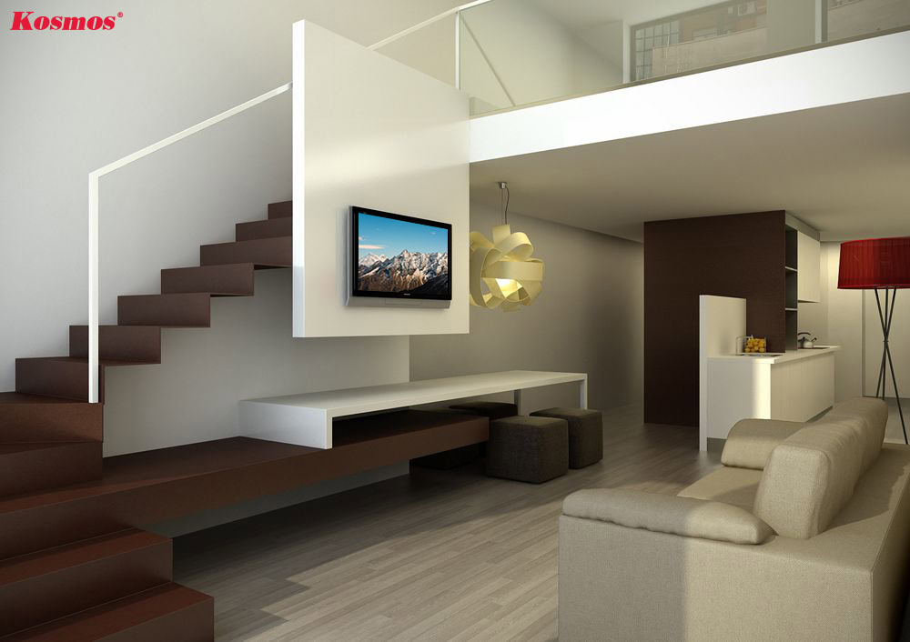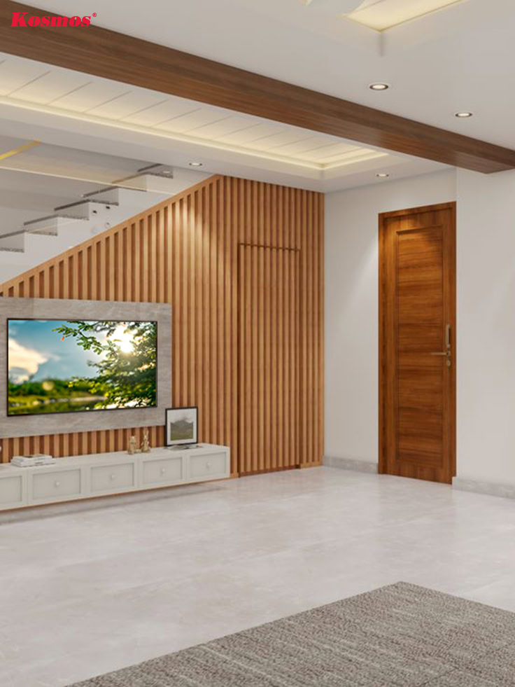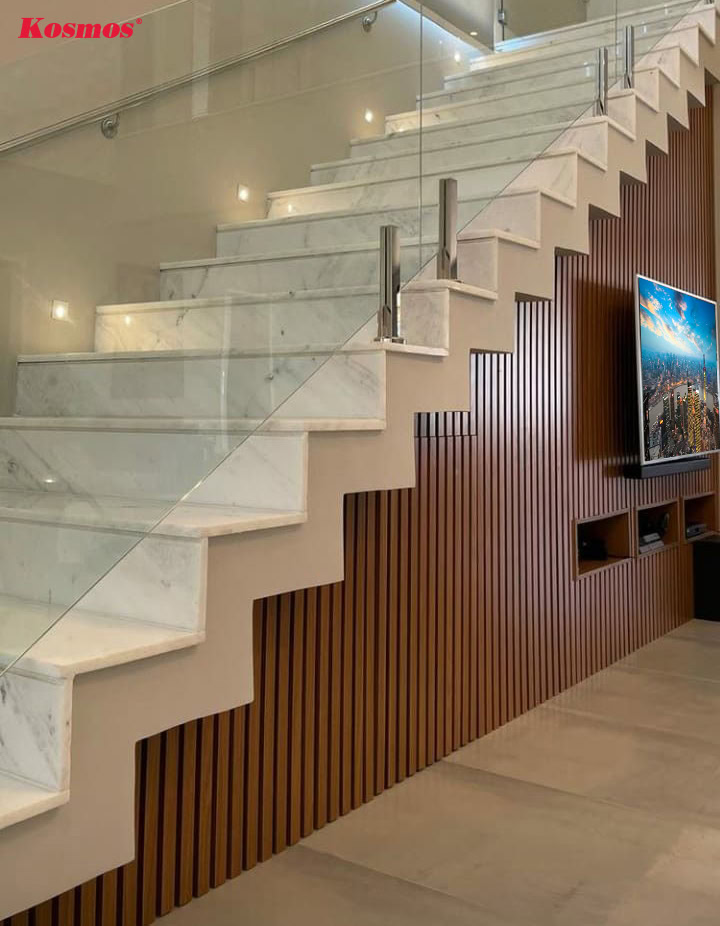 Kosmos Việt Nam tự hào là đơn vị cung cấp vật liệu trang trí nội – ngoại thất cao cấp, bền vững và hiện đại. Chúng tôi hiện phân phối 4 dòng sản phẩm Quý Khách hàng nên tham khảo ứng dụng cho công trình kệ tivi kết hợp vách ngăn cầu thang: