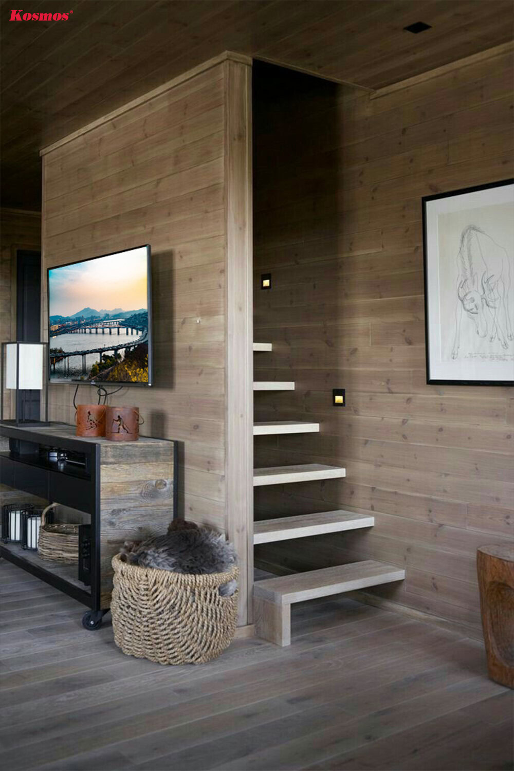 - Bậc cầu thang nhựa giả gỗ: Bậc cầu thang nhựa giả gỗ làm từ nhựa PVC, mô phỏng chân thực vân gỗ tự nhiên, ấm cúng, gần gũi. Sản phẩm chống cong vênh, chịu nước và có độ bền cao, phù hợp để tích hợp với vách tivi cầu thang.