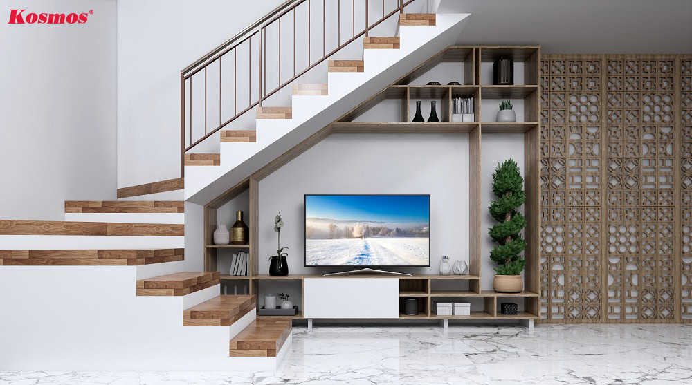 99+ Mẫu vách tivi cầu thang đẹp, tối ưu không gian 2025