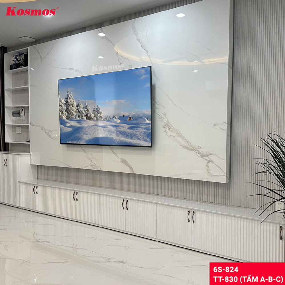 - Tấm PVC vân đá: Tấm PVC vân đá là lựa chọn thay thế đá tự nhiên với chi phí tối ưu, mang lại vẻ đẹp sang trọng. Với trọng lượng nhẹ (khoảng 5,04kg/m²), tấm PVC vân đá lý tưởng cho vách tivi cầu thang, đặc biệt trong các không gian chung cư có tường gạch mỏng.