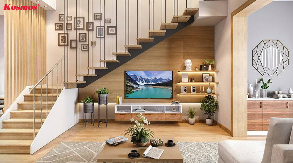 Đâu là vật liệu giúp vách tivi cầu thang thêm đẹp, nổi bật và ấn tượng?