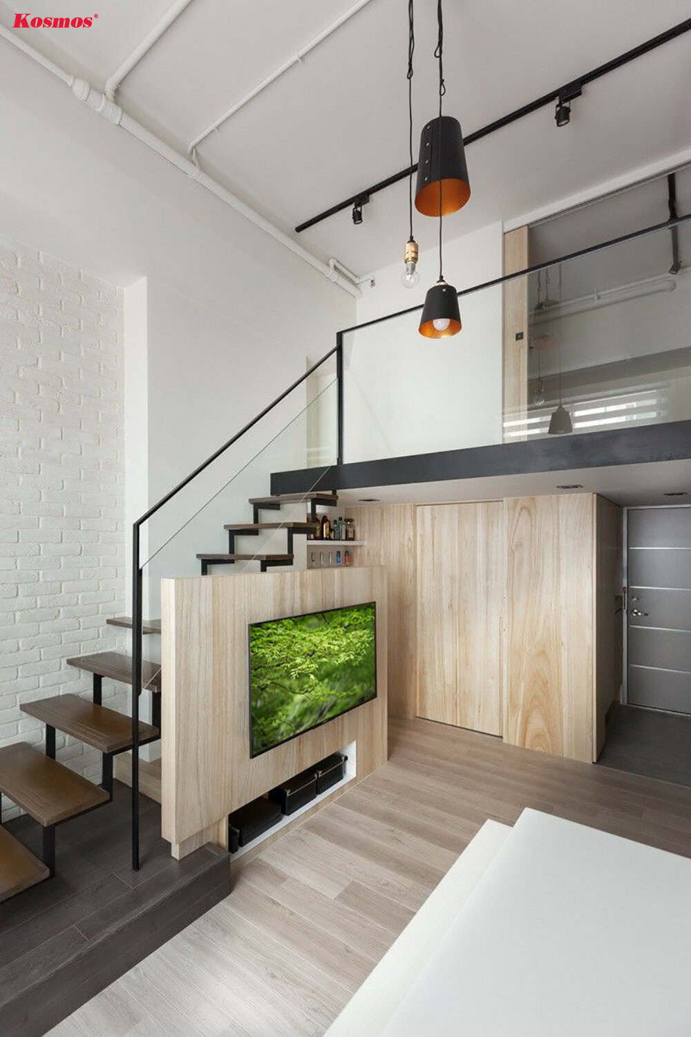 - Tối ưu hóa không gian sống: Trong những căn nhà có diện tích hạn chế, việc tích hợp vách ngăn cầu thang với kệ tivi là một giải pháp thông minh để tiết kiệm không gian. Thay vì sử dụng tường ngăn cố định và tủ tivi riêng lẻ, thiết kế này gộp hai chức năng vào một, tạo ra không gian trống rộng rãi hơn.