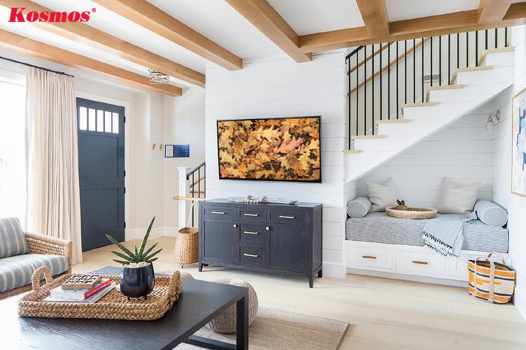 Vách tivi treo gầm cầu thang là giải pháp tối ưu cho các không gian nhỏ, lắp đặt tivi gắn bề mặt tường không chạm sàn. Được thiết kế từ gỗ công nghiệp, kim loại hoặc kết hợp cả hai, kệ treo thường có các ngăn lưu trữ nhỏ gọn, phù hợp để đặt tivi, thiết bị điện tử hoặc vật trang trí.