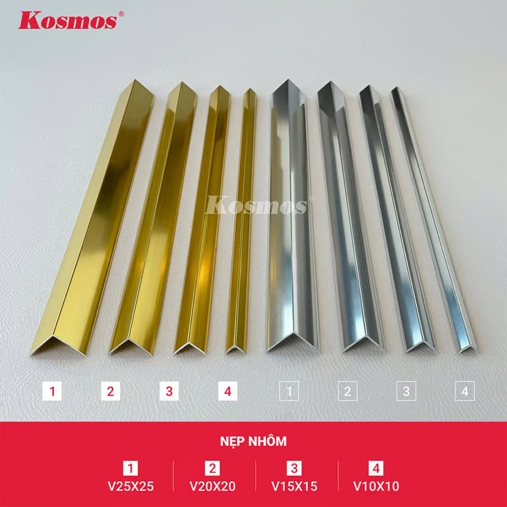 Kosmos đồng thời cung cấp hệ phụ kiện nẹp trang trí đa dạng, hỗ trợ tối ưu cho các hạng mục hoàn thiện và nâng cao tính thẩm mỹ tổng thể của công trình. Kosmos hiện phân phối 3 dòng nẹp trang trí, đáp ứng nhiều nhu cầu sử dụng: