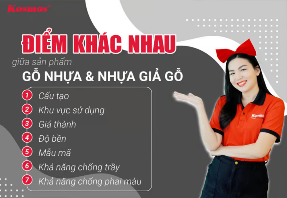 Bảng tóm tắt điểm khác nhau của nẹp V gỗ nhựa và nẹp V nhựa giả gỗ: