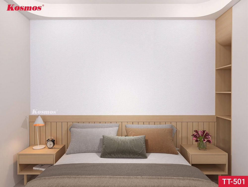 - Trắng vân giấy (gồm dòng vân giấy thường và vân giấy dập nổi 3D): Bề mặt được tạo hình tương tự giấy thật, tạo chiều sâu tinh tế cho không gian.