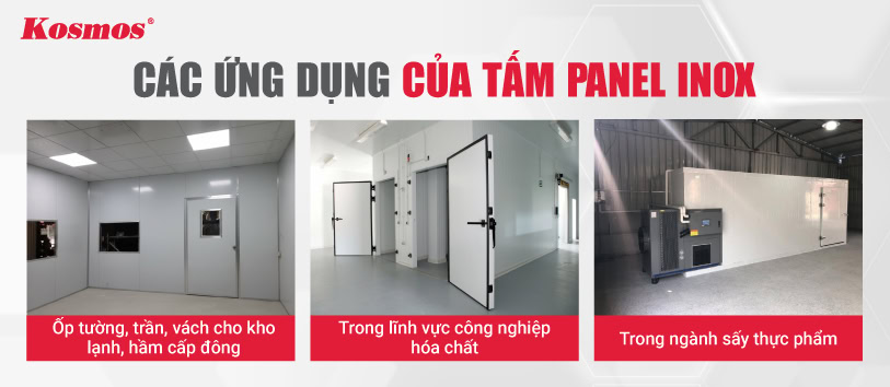 - Trong ngành sấy thực phẩm: Ngành sấy thực phẩm lựa chọn tấm Panel Inox nhờ khả năng chịu nhiệt cao và đáp ứng các yêu cầu vệ sinh an toàn thực phẩm. Các phòng sấy trái cây, hải sản, và nông sản sử dụng tấm panel lõi bông khoáng (Rockwool) có khả năng chịu nhiệt đến 1000°C, đảm bảo an toàn cháy nổ.