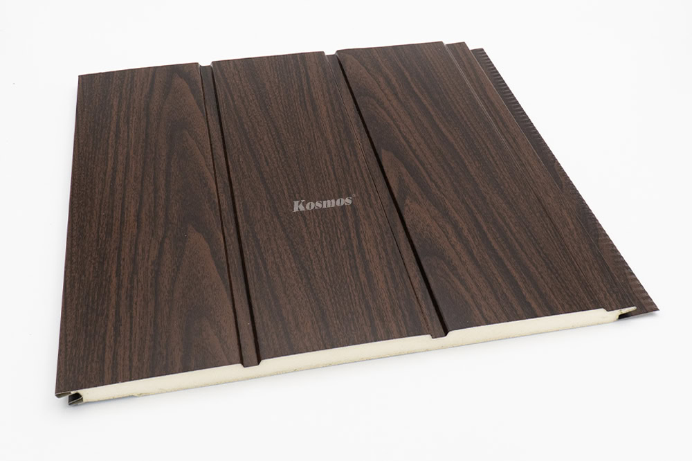 Kosmos Việt Nam được là đơn vị phân phối panel vân gỗ uy tín, cung cấp sản phẩm đạt tiêu chuẩn cả về thẩm mỹ lẫn tính năng. Hiện tại, Kosmos mang đến 2 gam màu vân gỗ phổ biến gồm nâu cánh gián và nâu walnut với biên dạng 3/4 sóng hoặc 7 sóng.