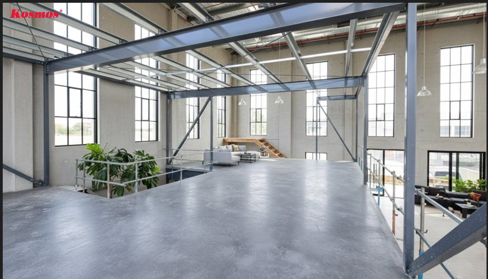 Hệ thống tổng kho Kosmos với quy mô lớn 10.000m² đảm bảo nguồn cung vật liệu ổn định, đồng nhất cho dù dự án lớn hay nhỏ. Đại lý Kosmos cung cấp hướng dẫn chi tiết hoặc giới thiệu đội ngũ thi công chuyên môn cao, đảm bảo việc lắp đặt tuân thủ đúng quy trình, đảm bảo độ an toàn của sàn gác lửng.