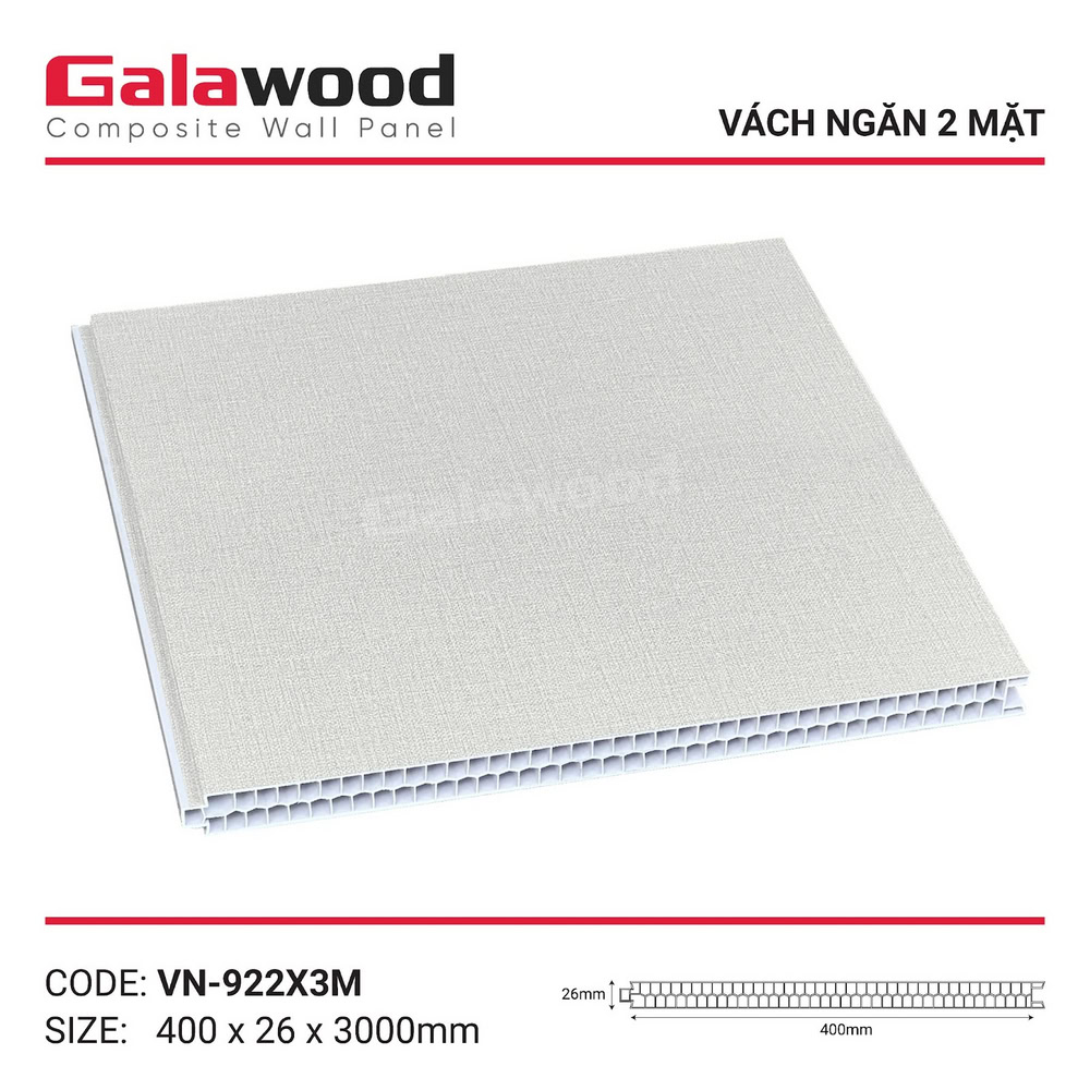 Vách ngăn nhựa PVC 2 mặt có cấu tạo 4 lớp với lõi SPC (40% nhựa PVC + 60% bột đá và phụ gia), tạo kết cấu tổ ong chịu tải 200 – 300 kg/m². Loại vách này nhẹ hơn (8 – 12 kg/m²), độ dày 12mm, dễ lắp đặt nhanh chóng không cần khung xương phức tạp, và có tuổi thọ 15 – 20 năm. Vách nhựa 2 mặt cũng chống nước, chống ẩm mốc 100%, thích hợp cho nhà ở, văn phòng, phòng học, nhà trọ và showroom.