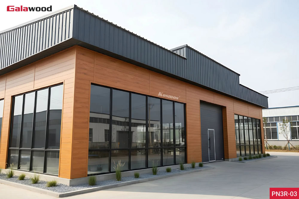 Ngoài panel PU, Kosmos còn cung cấp các 2 dòng vật liệu trang trí ngoại thất nhà tiền chế gồm gỗ nhựa ngoài trời và nhựa giả gỗ ASA. Hai dòng này có khả năng chống nước vượt trội, không bị mối mọt, mang lại vẻ đẹp như gỗ thật nhưng phù hợp cho khí hậu nóng ẩm của Việt Nam.